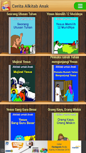 Cerita Alkitab Anak adalah aplikasi cerita Alkitab untuk anak yang meliputi kisah yang diambil dari Alkita,b mulai dari Perjanjian Lama sampai dengan Perjanjian Baru.